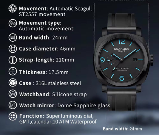 SEAKOSS GMT Diving Automatic Mechanical Watch Men 1963 Original