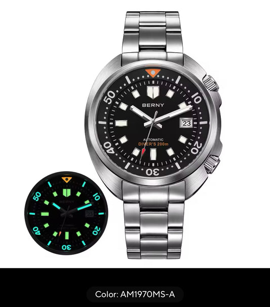 BERNY Automatic Diver Watch for Men Super Luminous Wristwatch Sapphire Swim Sport Mechanical 20ATM Compressor Diving Mens Watch